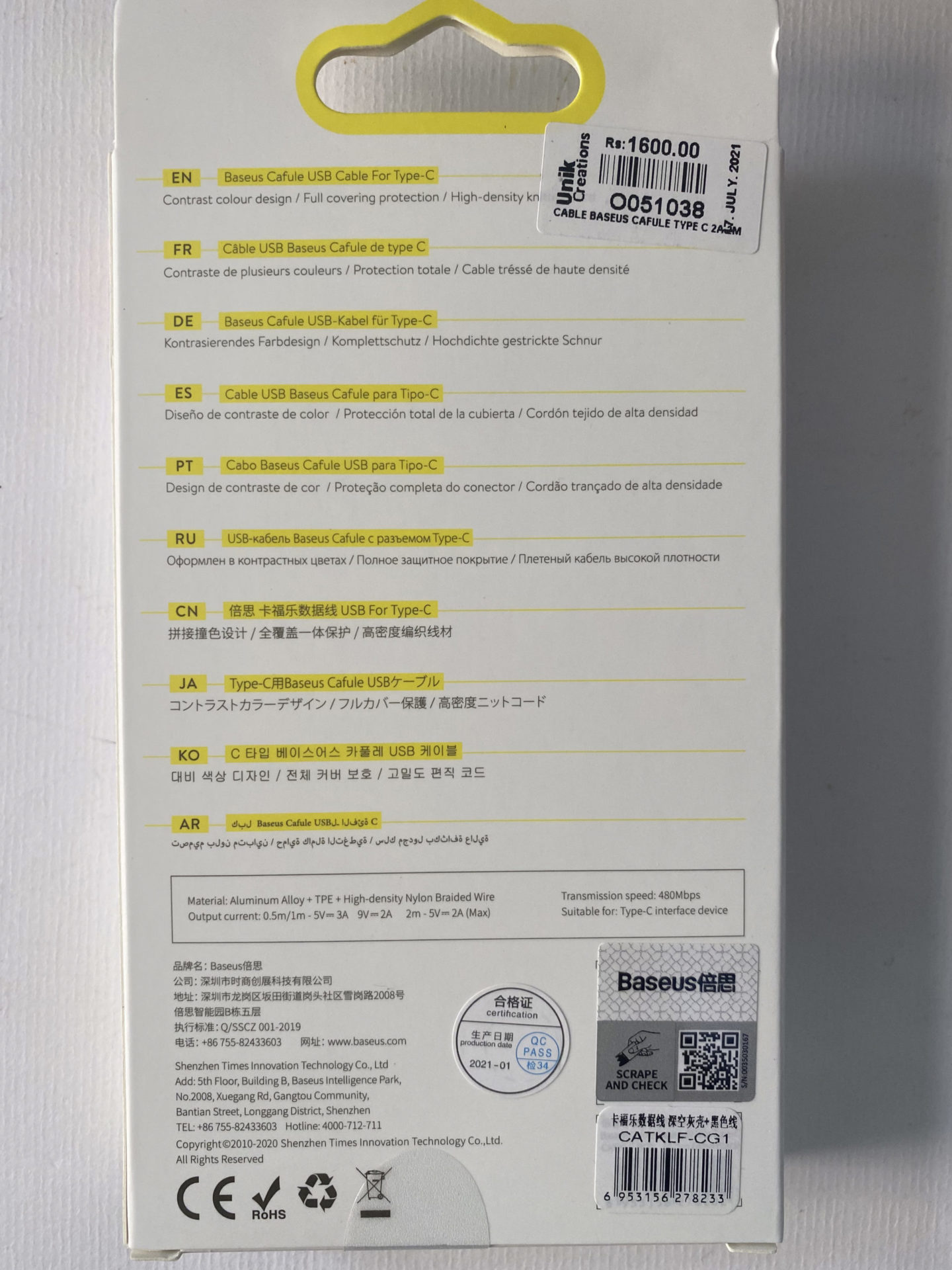 Be the first to review “CABLE BASEUS CAFULE TYC 2A 2M C91”